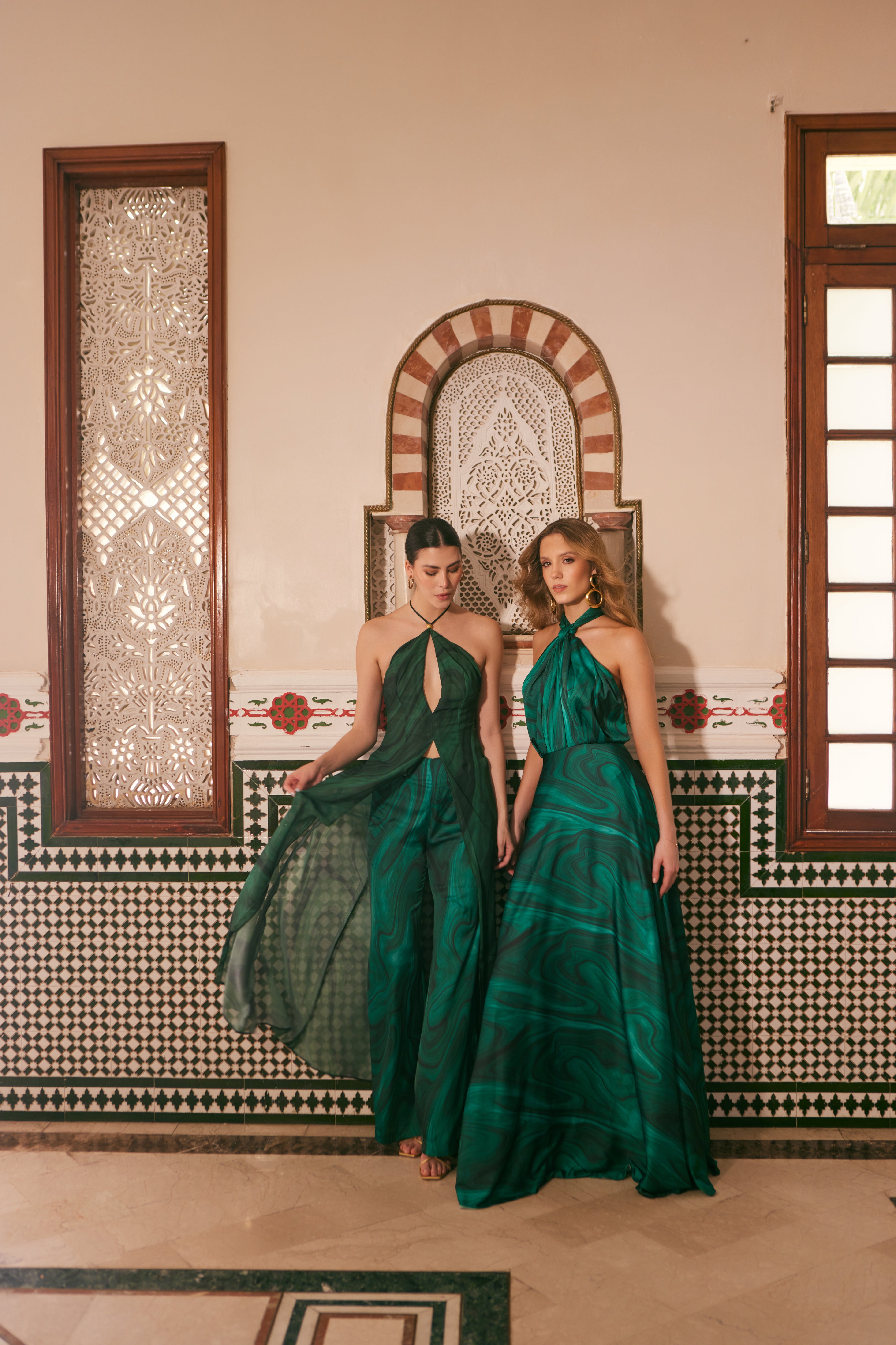 Nuestra paleta de colores en tendencia incluye tonos terracota, beige, nude, verdes, blanco y el muy en tendencia amarillo mantequilla. Los prints, inspirados en la arquitectura y el desierto marroquí, aportan autenticidad y artesanía a cada pieza.