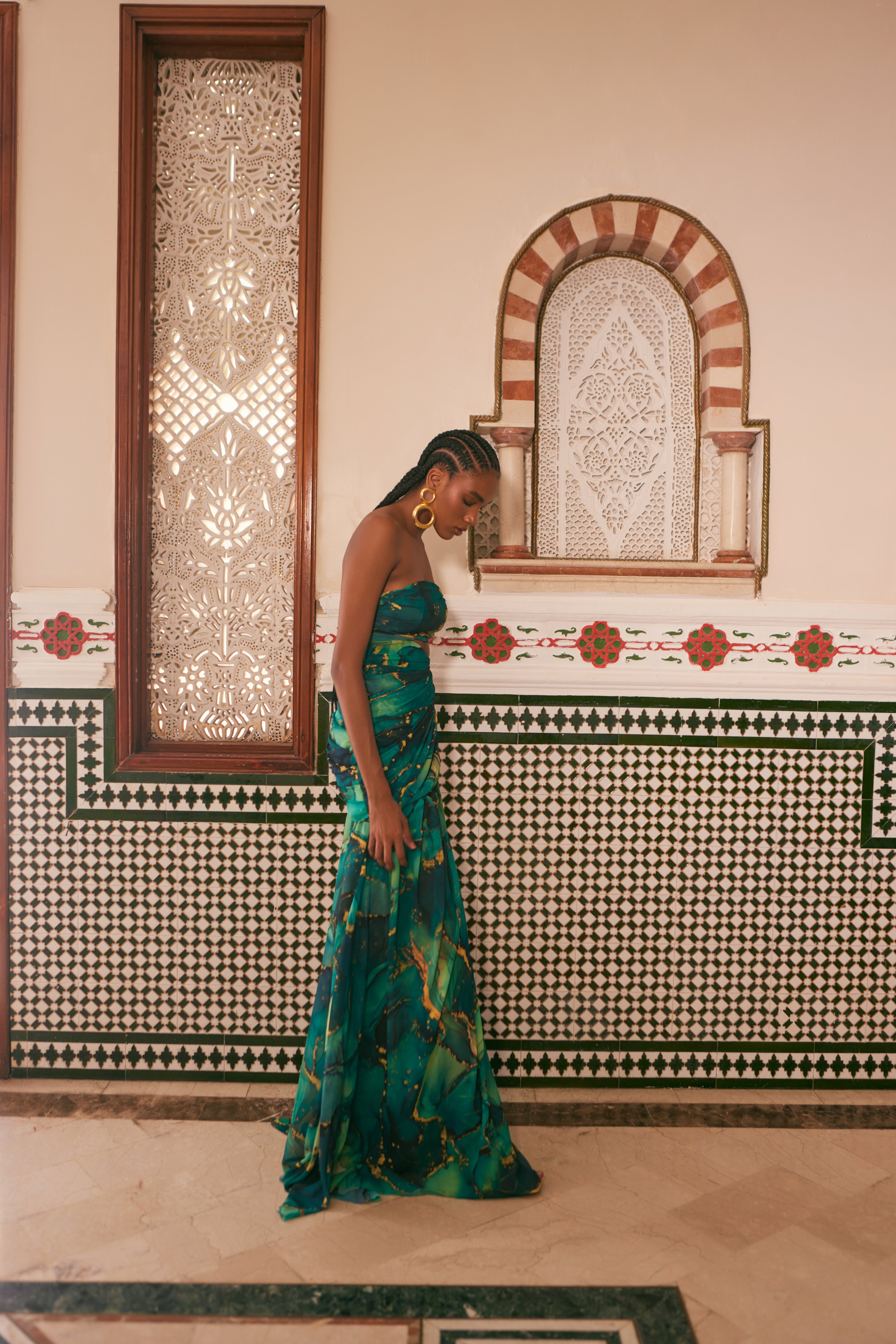 La colección Couture Caravana está inspirada en la elegancia y el espíritu aventurero de las caravanas que atraviesan los desiertos marroquíes. Esta línea combina la sofisticación de la alta costura con la rica tradición y el exotismo de las rutas culturales de Marruecos.