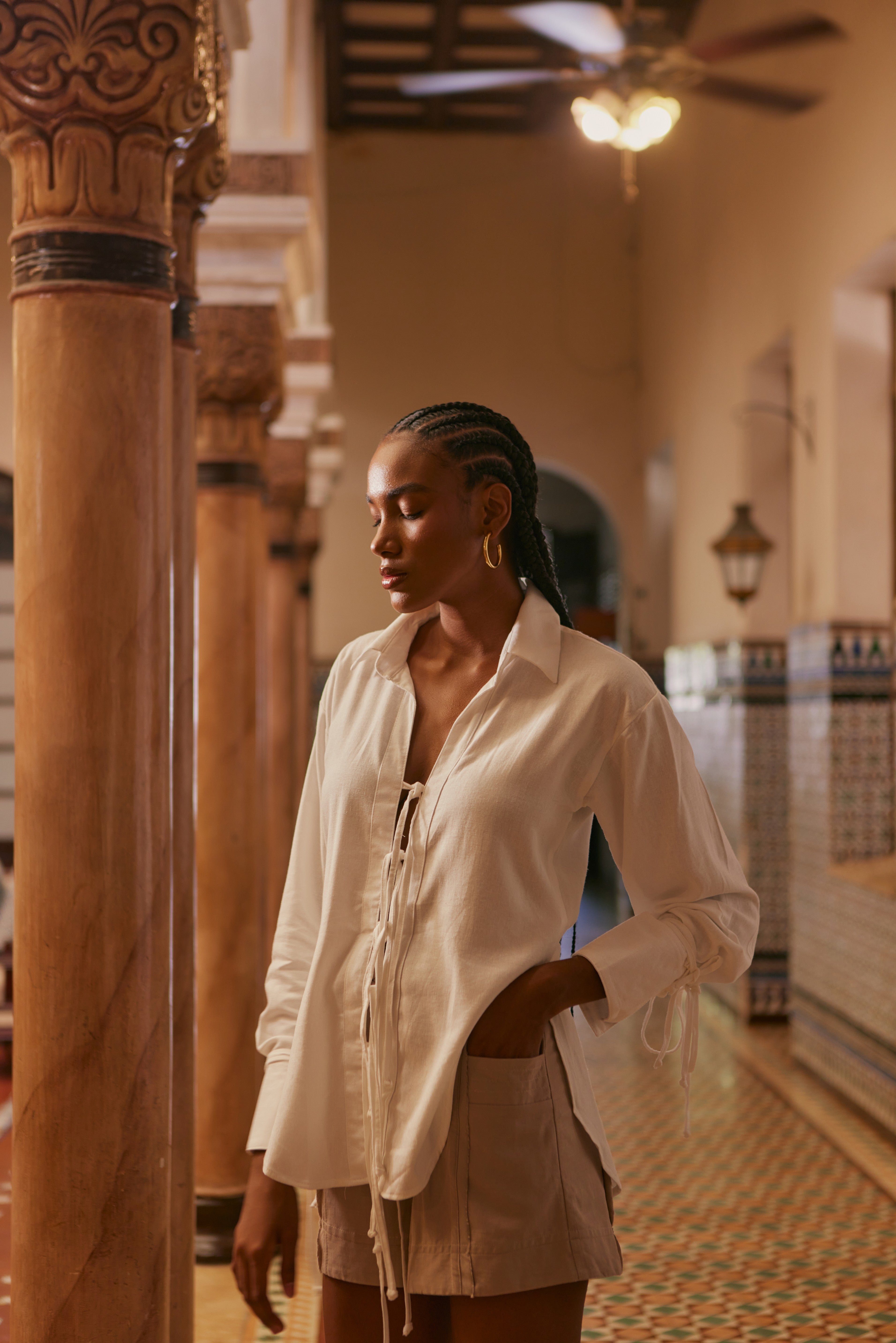 We recommend that our customers wash delicate garments made from fabrics such as natural linen, cotton chiffon, crepe, shambray, and silk by hand and not iron at high temperatures, as this can weaken the fibers and cause damage.