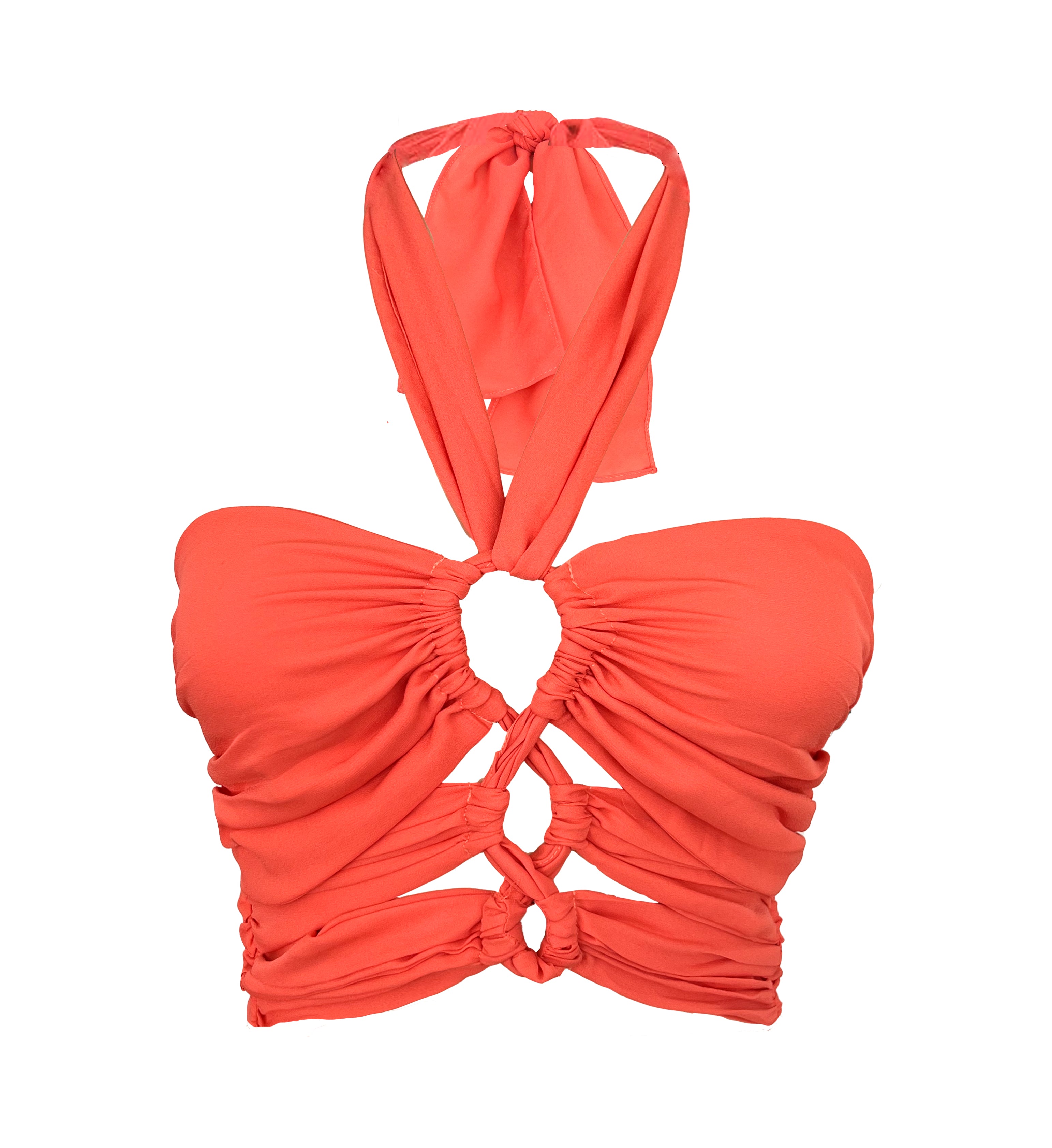 Elevate your look with our Estopa Pomelo top. Crafted from lightweight Italian chiffon, this halter top is perfect for warm, sunny days. Featuring a flattering halter neckline and a lace-up front, the fitted, draped bodice ensures a snug and flattering fit. With its cropped length, it's ideal for layering with high-waisted tops. Made from 100% viscose, this lightweight, non-stretch fabric is breathable and durable, and the top is fully lined. Experience effortless summer style with the Pomelo top.